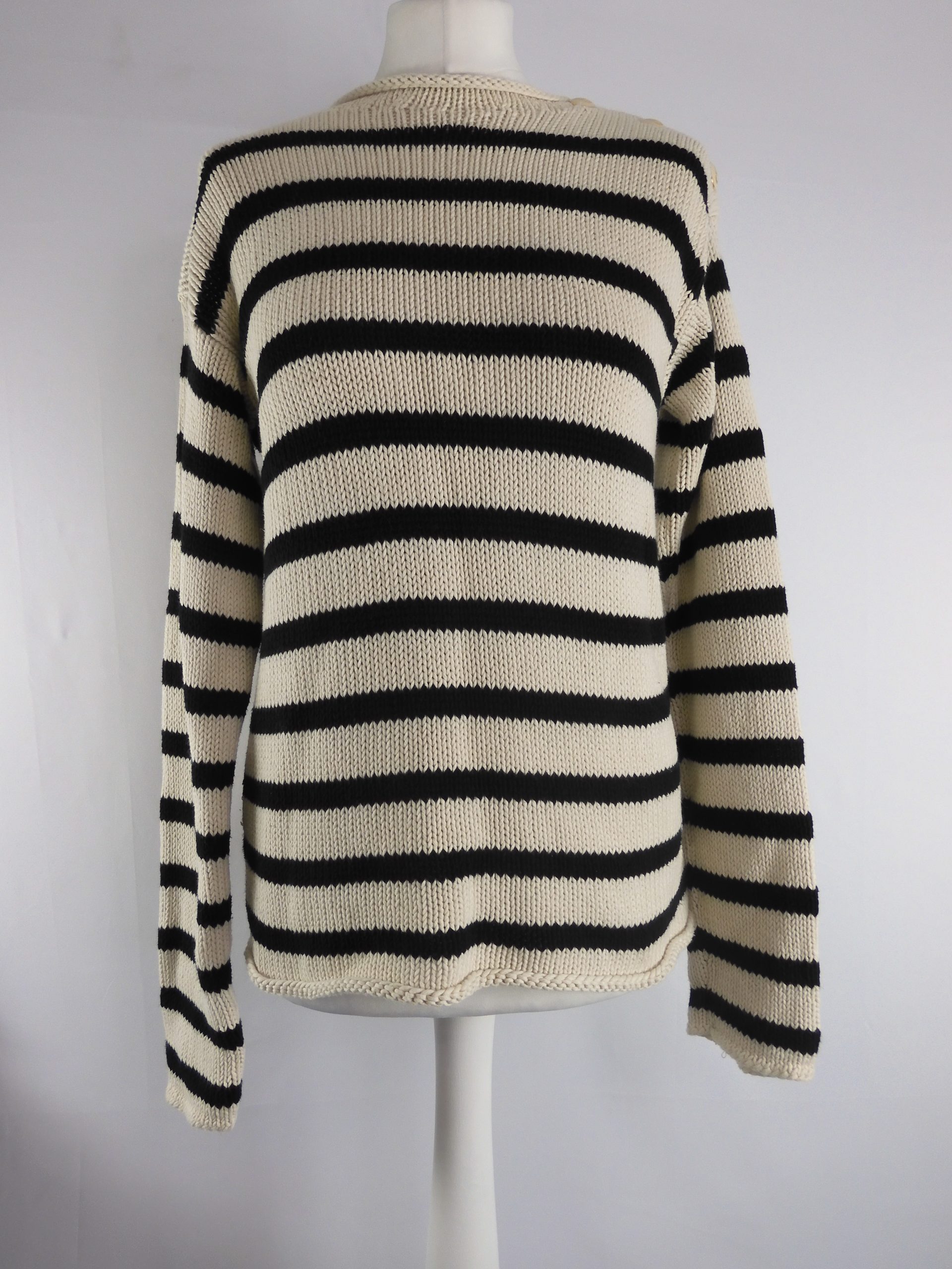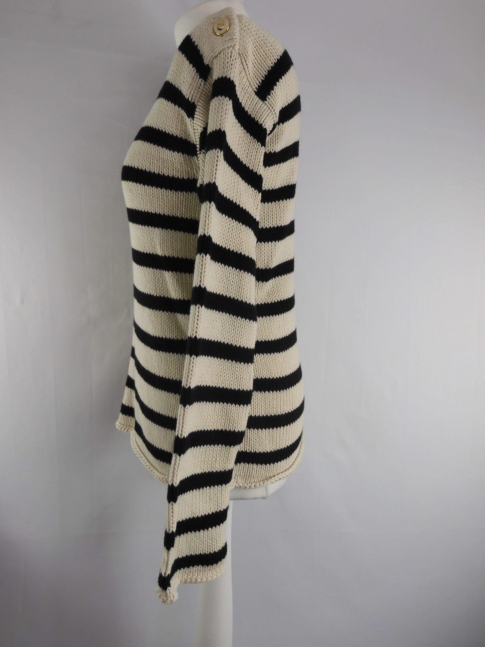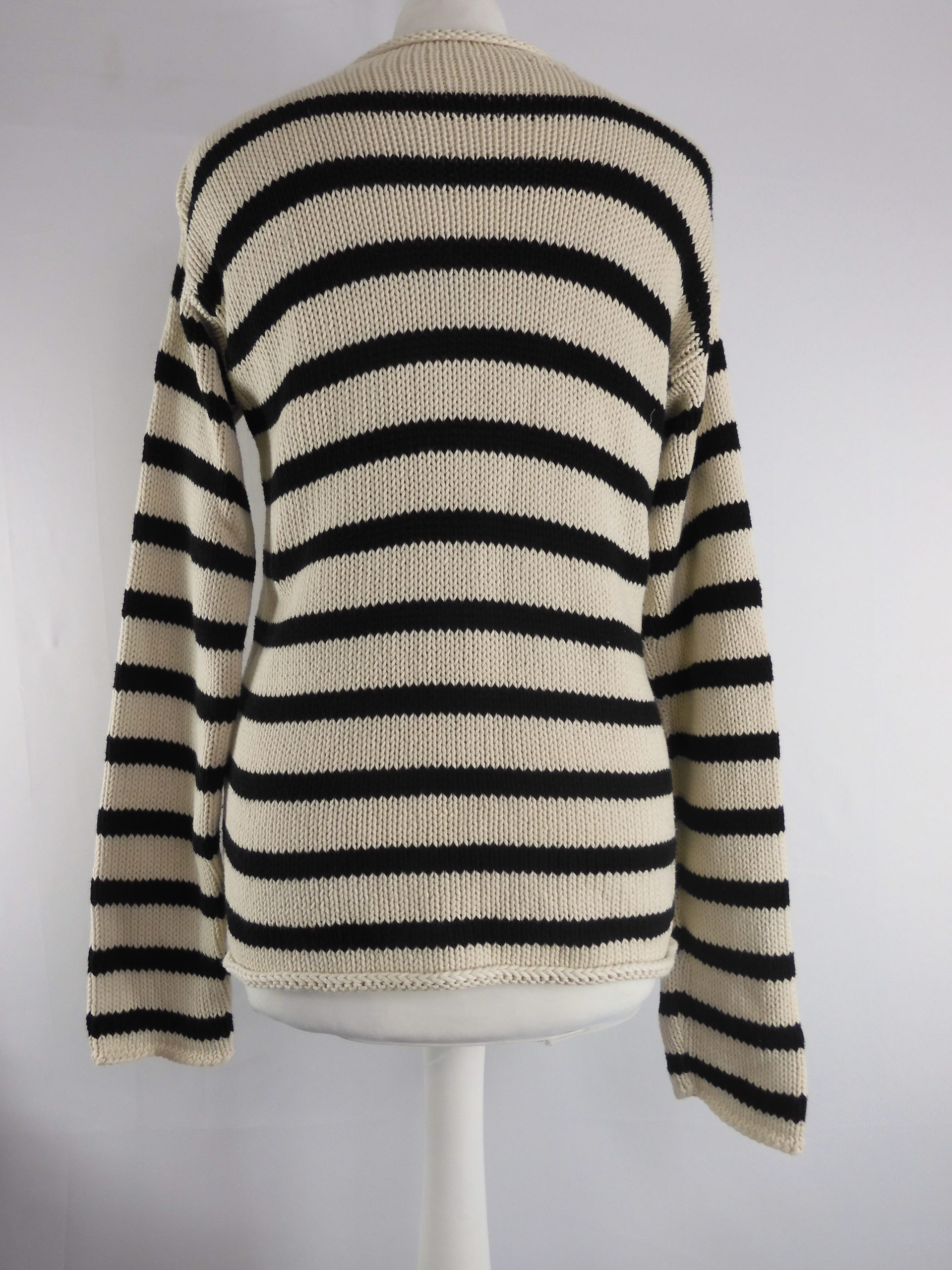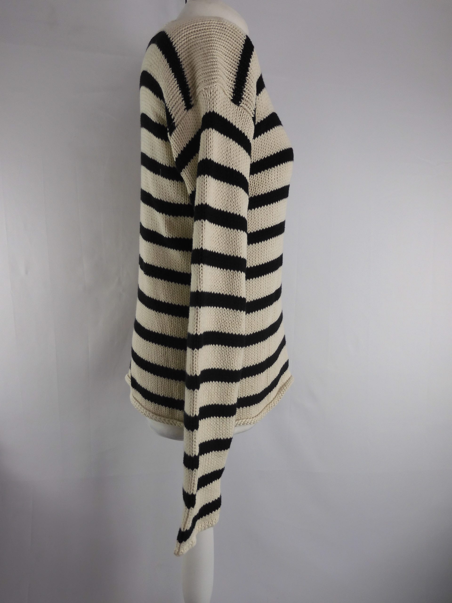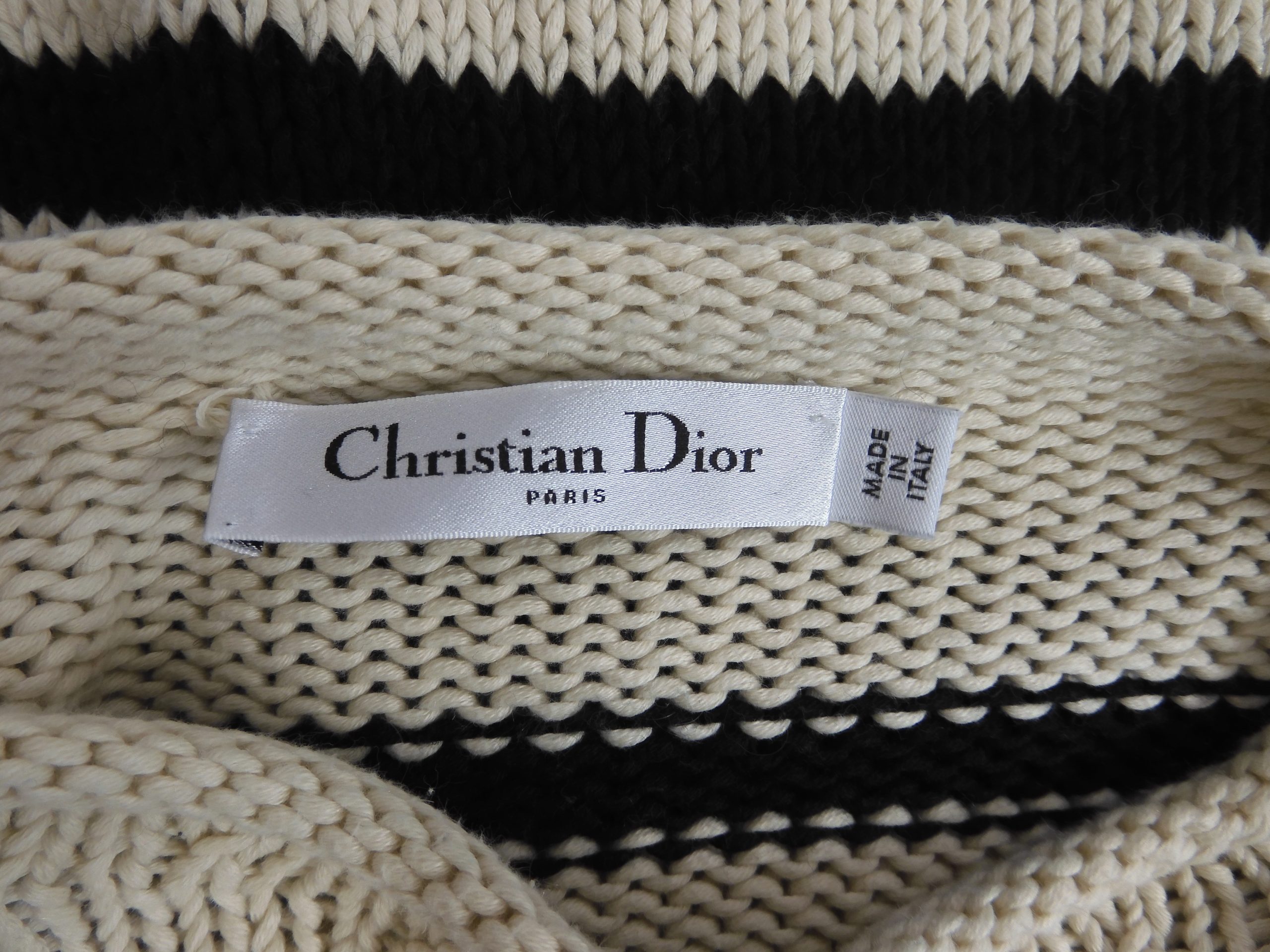 Christian Dior Black/White Stripe Rib Knit Crew Neck Sweater, Size 10.