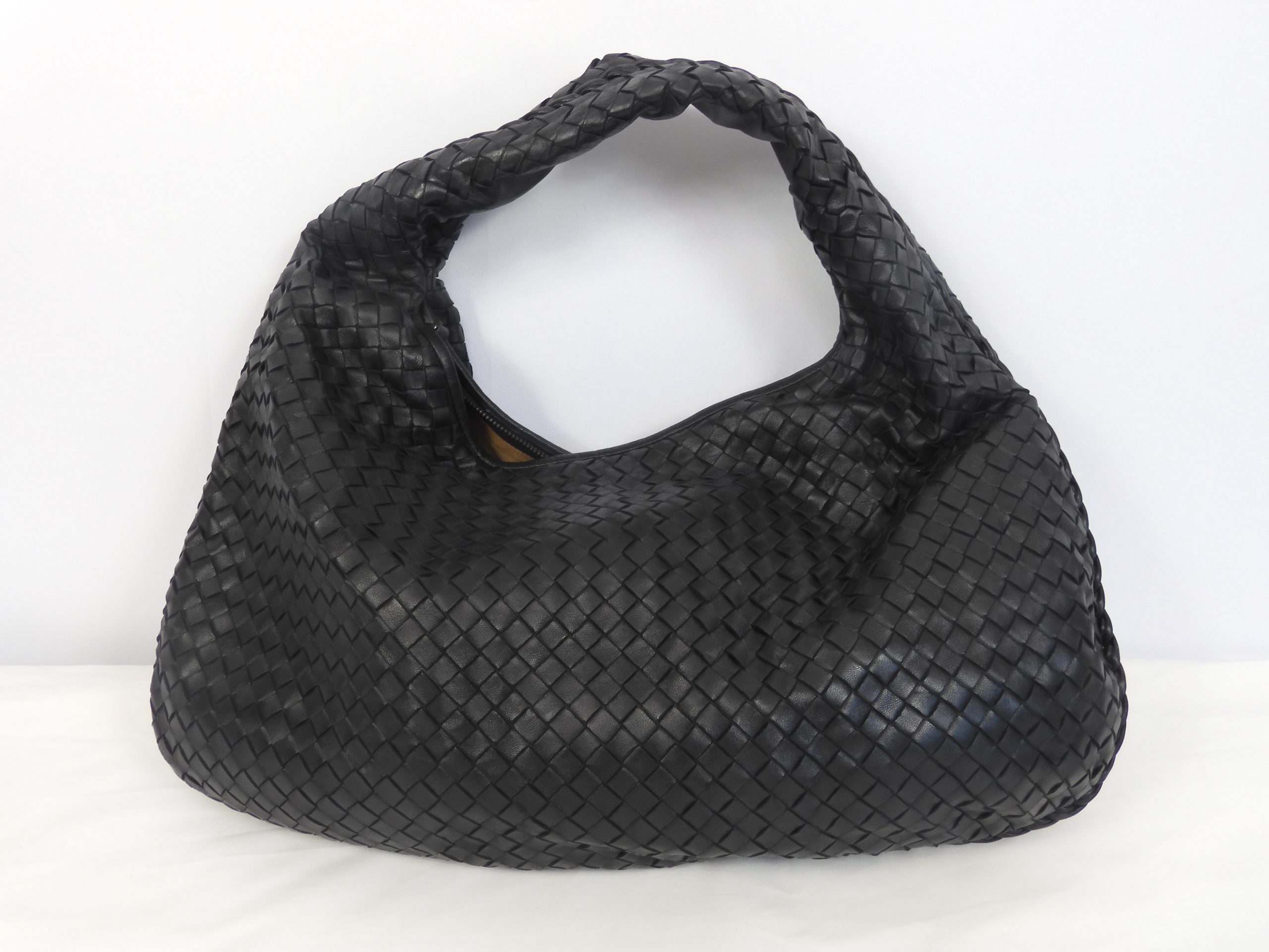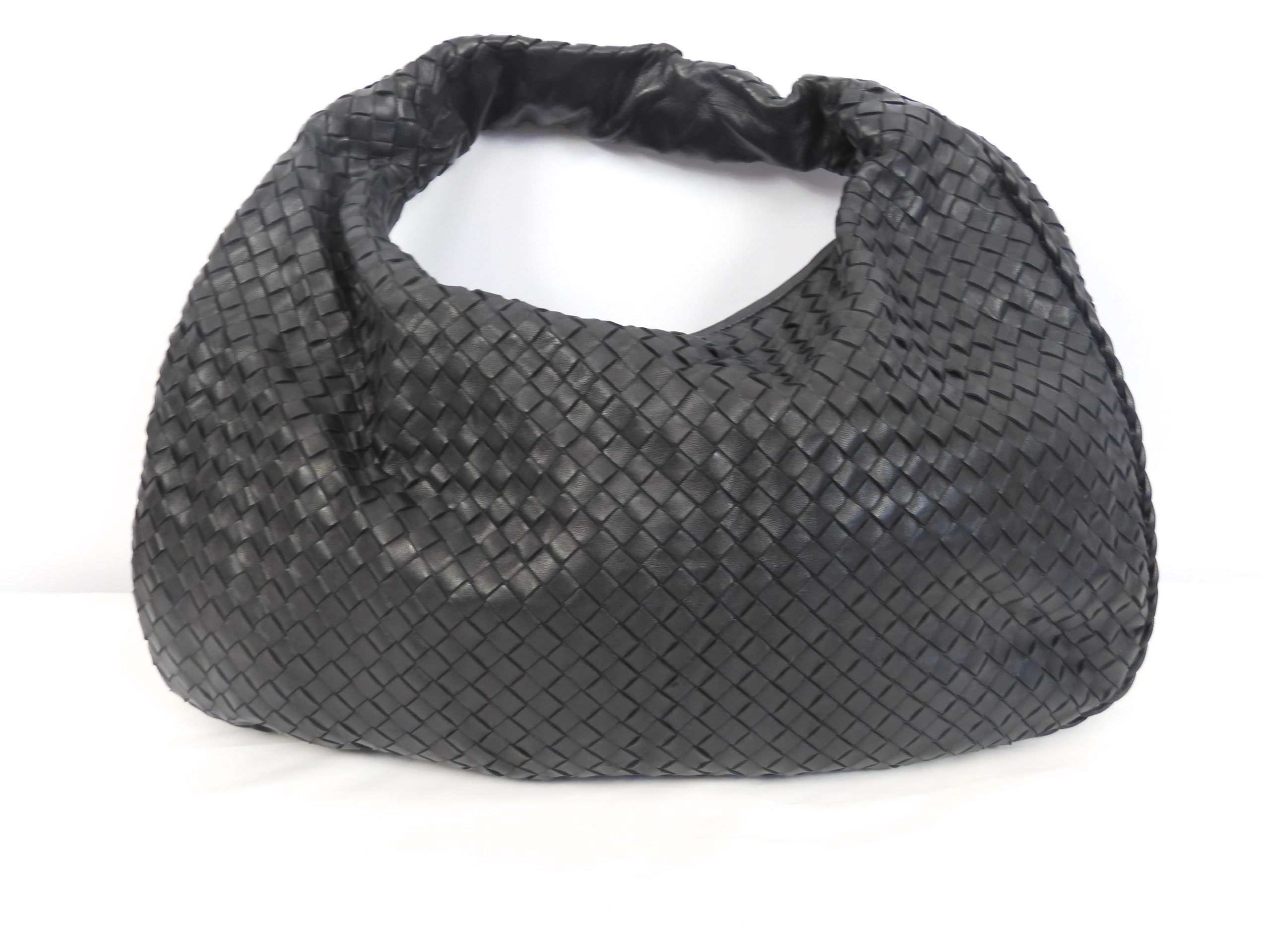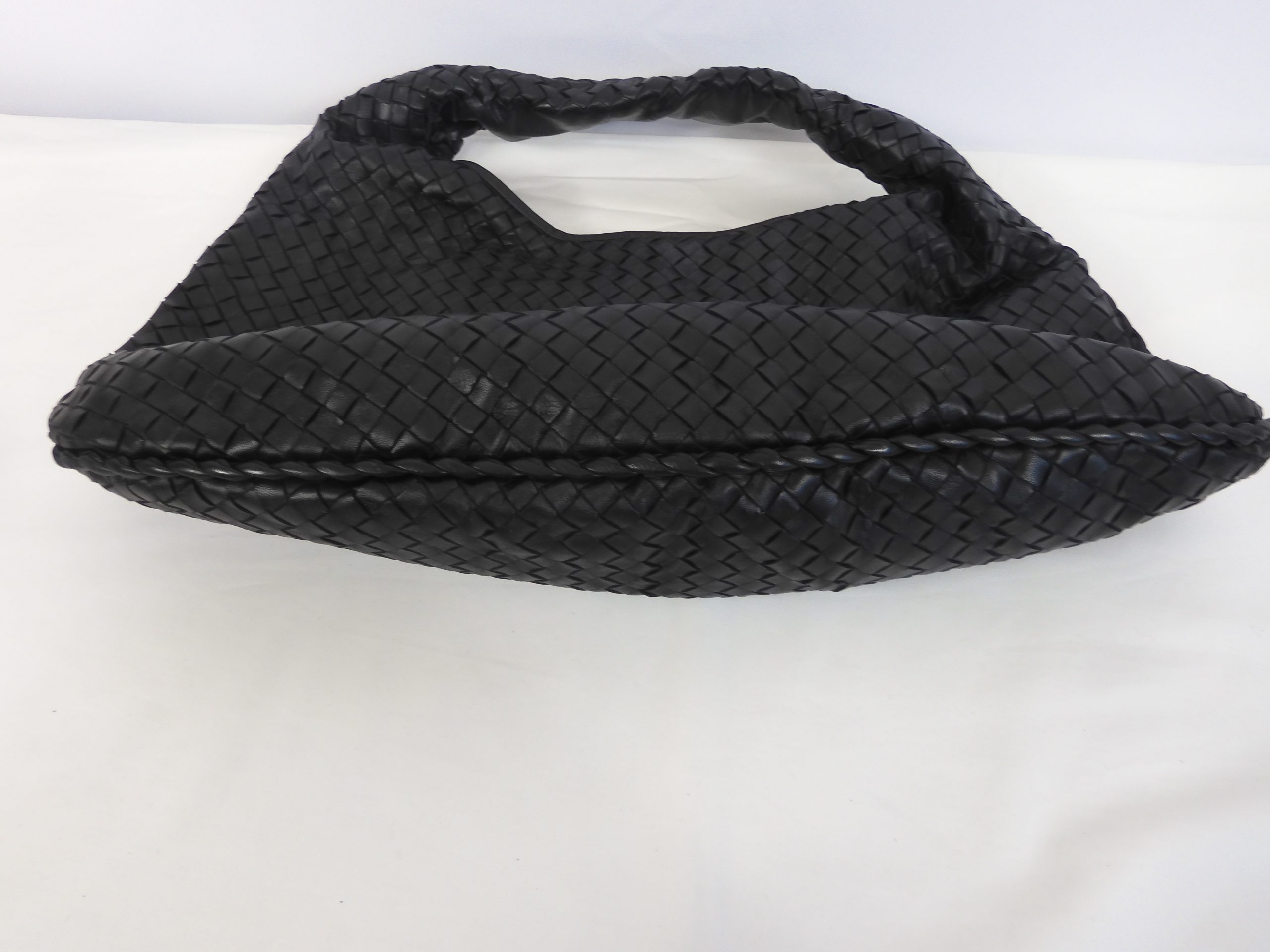 Bottega Veneta Large Hobo Intrecciato Black Leather Shoulder Bag.