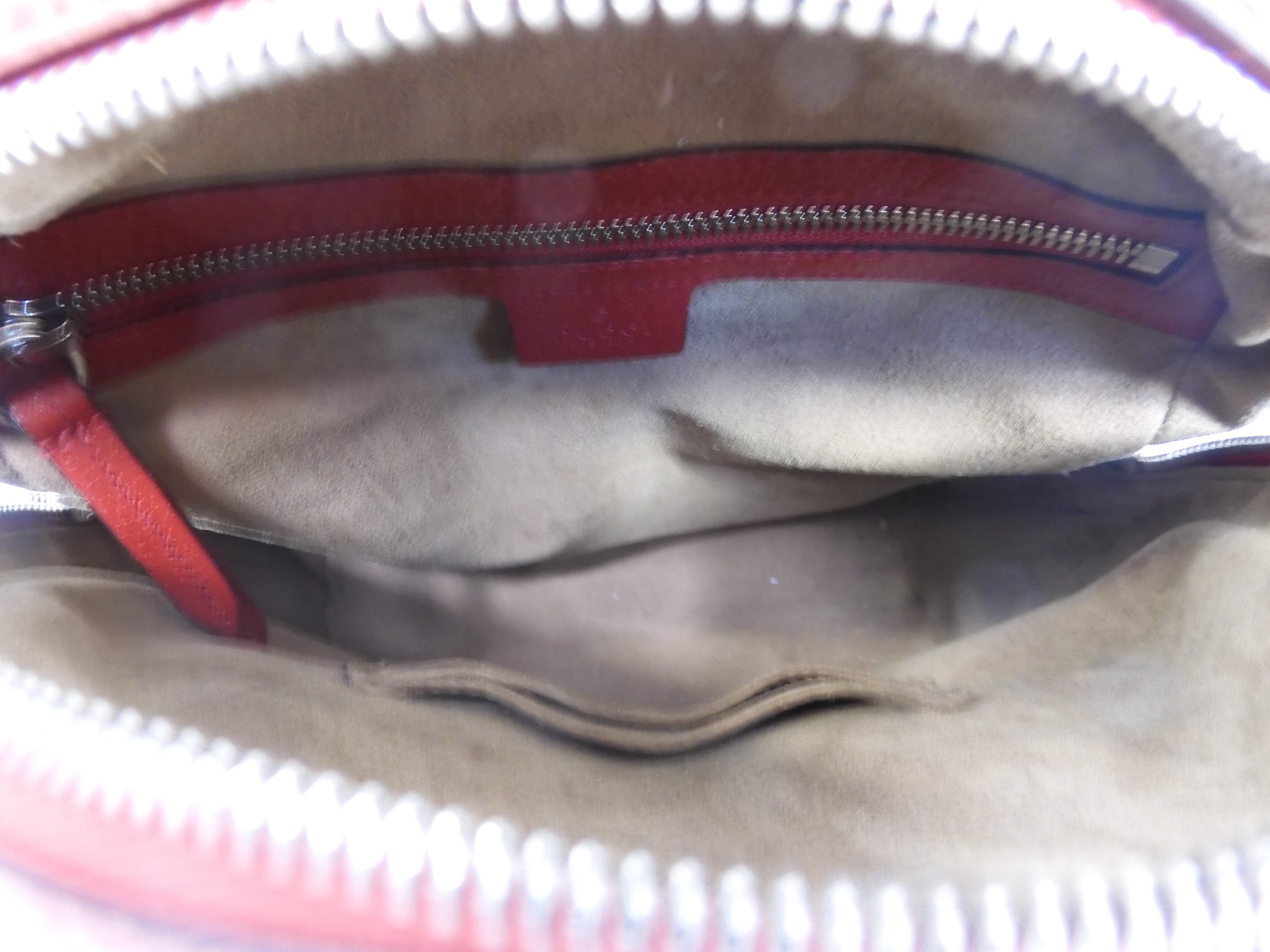 GG Supreme Monogram Tian Web Small Day Backpack Beige Multicolor Red. Does show a few wear marks on the red, as in a bit faded, as shown in the images, otherwise very good condition.
